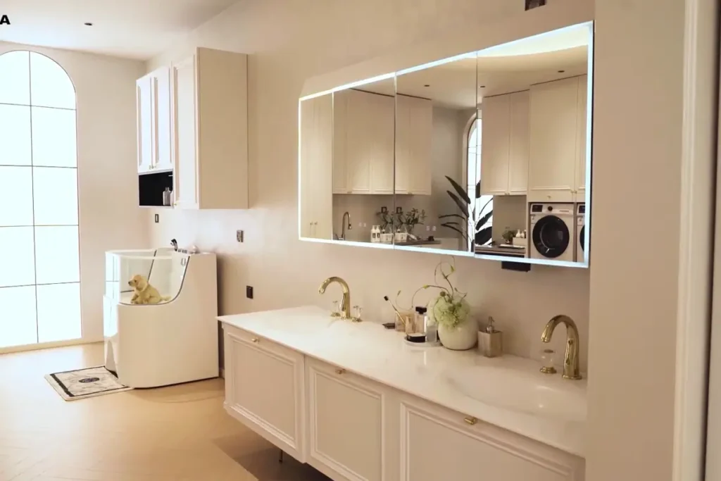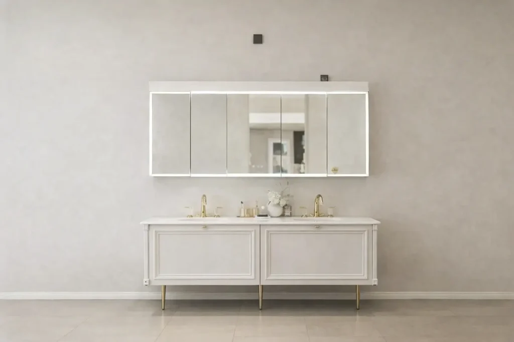Designed in a light French style, this bathroom vanity delivers a warm, elegant appearance while housing a stainless steel cabinet body inside. It blends visual softness with long-term everyday practicality.