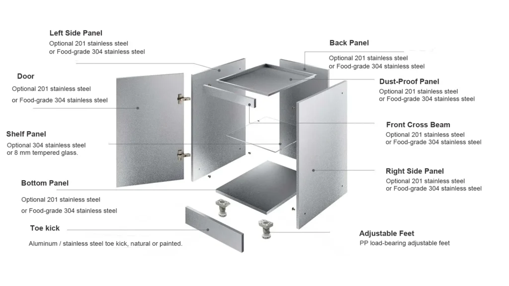 Stainless steel cabinets resist moisture, mold, and corrosion —unlike traditional cabinets that degrade over time.