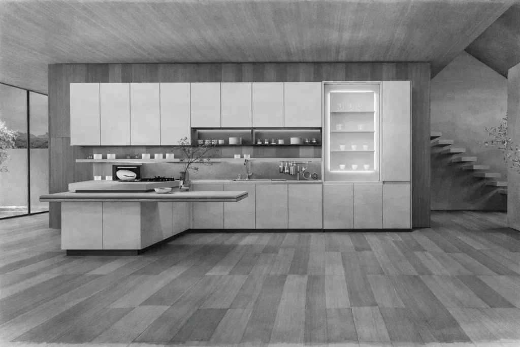 This kitchen system is constructed with a complete stainless steel internal structure, including cabinet bodies, shelves, and supporting components. Precision CNC fabrication and laser welding ensure dimensional accuracy and long-term stability, while flat-panel fronts and concealed details maintain a calm visual presence. The combination of durable materials, controlled surface finishes, and modular planning makes it suitable for contemporary kitchens requiring both performance and visual clarity.
