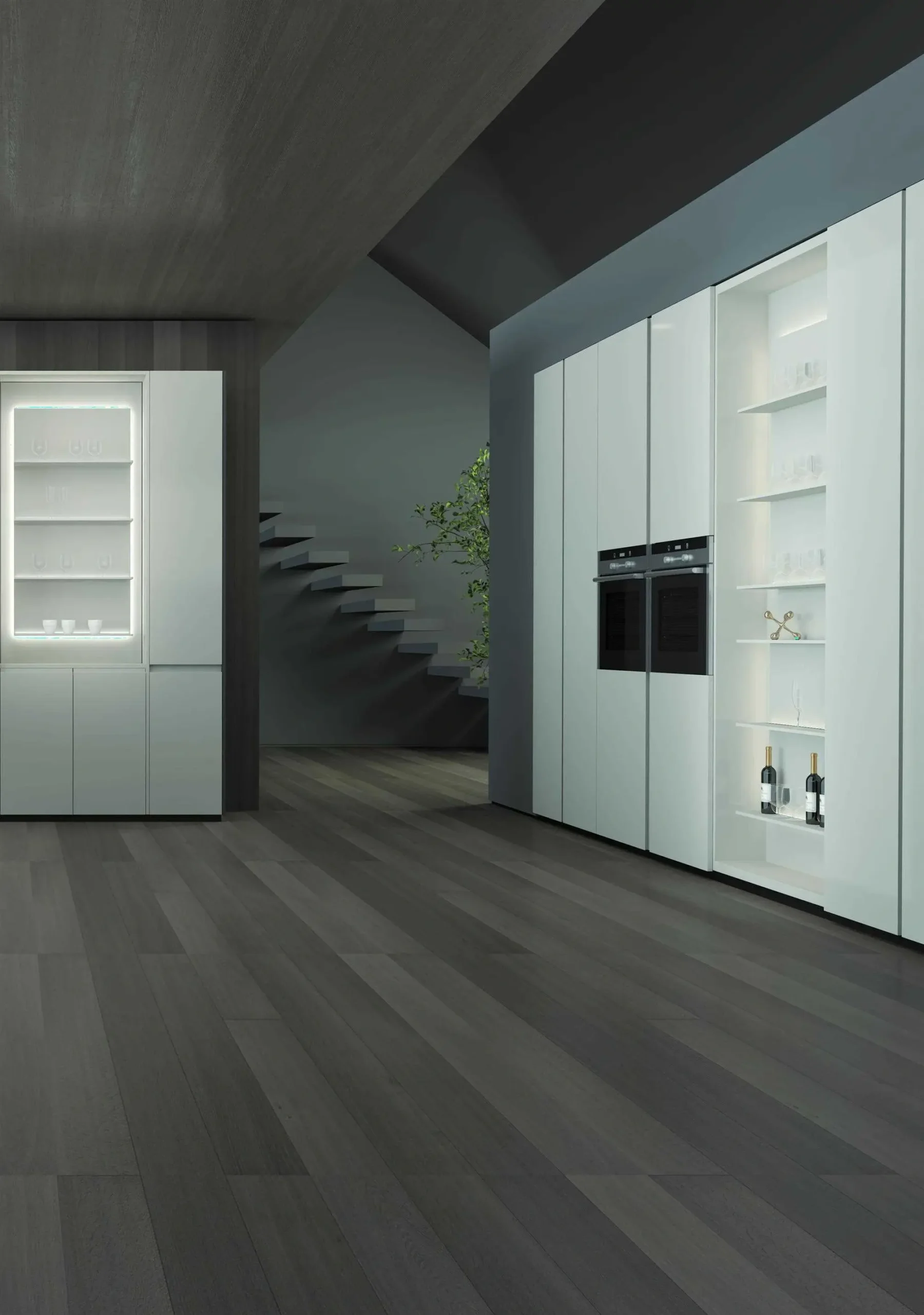Tall pantry cabinets are designed to maximize vertical storage while maintaining a clean, integrated kitchen layout. They provide ample space for food storage, built-in appliances, and daily essentials, combining functionality with a refined overall appearance.