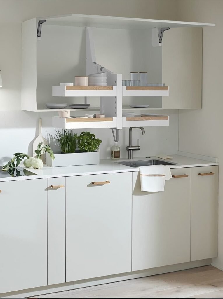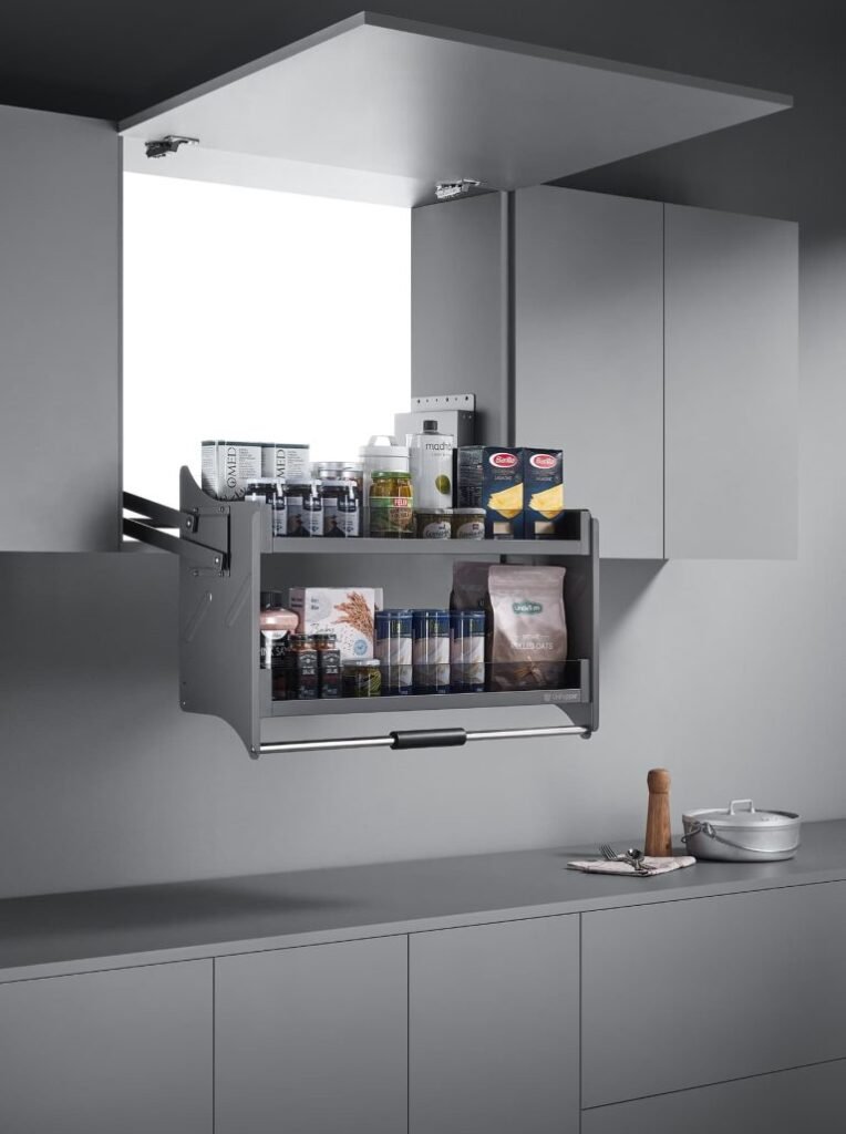 Top cabinets in a kitchen system provide essential overhead storage, optimizing space for utensils, dishes, and ingredients, while enhancing the kitchen’s design with sleek, functional solutions.