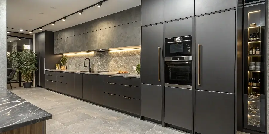Dramatic and sophisticated, black cabinetry is a bold design choice. Paired with brass or gold hardware, it delivers a modern or industrial edge and turns the kitchen into a statement space.