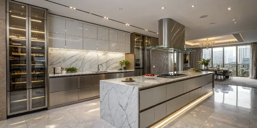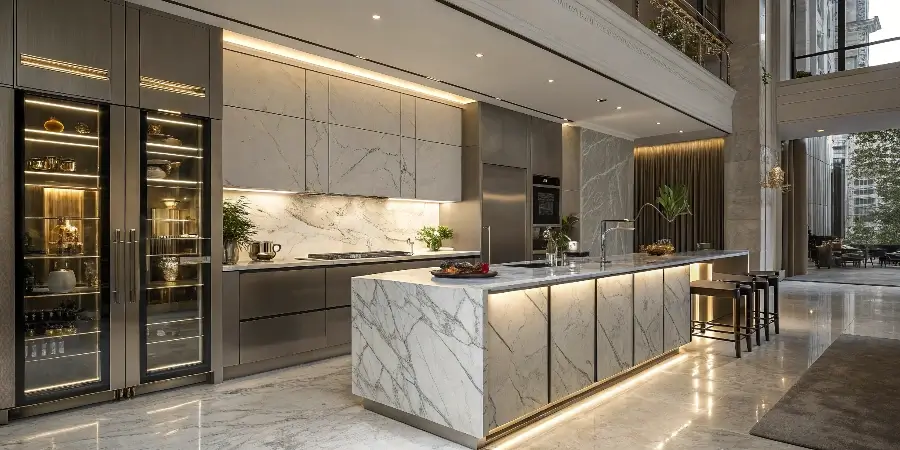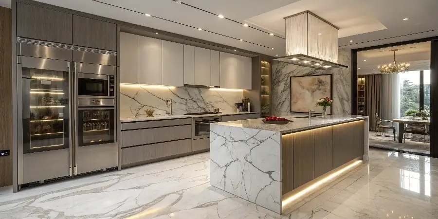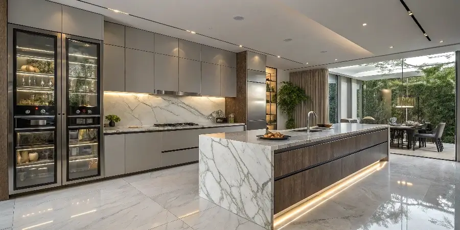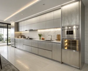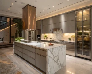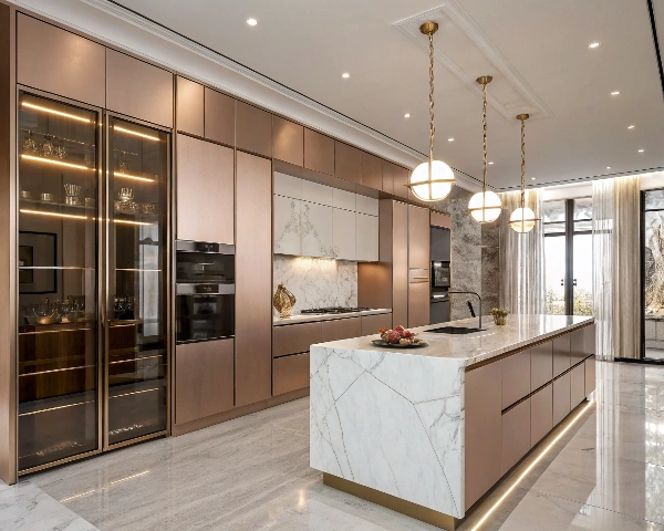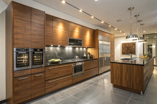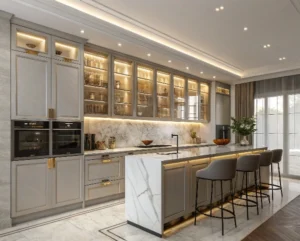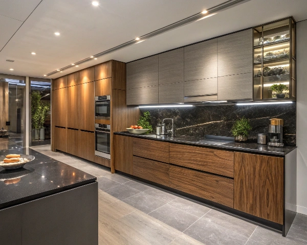 Rich wood tones such as walnut, chestnut, or espresso bring warmth, texture, and an organic connection to nature. Ideal for farmhouse, rustic, or traditional kitchens with timeless character.
