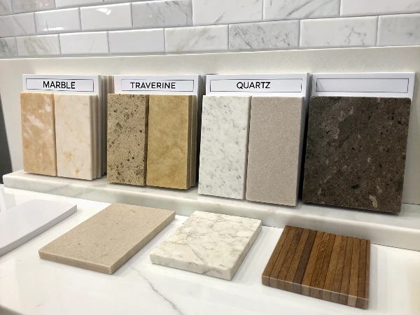 Curated surfaces to match any vision — from warm woods to sleek stones.