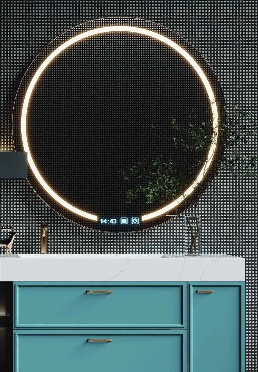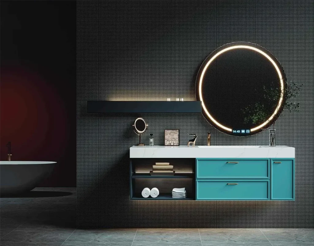 This bathroom mirror cabinet is built on a stainless steel structural core that supports the mirror, integrated lighting, and concealed storage compartments. CNC fabrication and laser welding ensure structural precision, while the combination of circular mirror geometry and linear shelving creates a balanced visual composition. The system provides durable storage, controlled lighting, and a refined appearance for modern residential bathrooms.