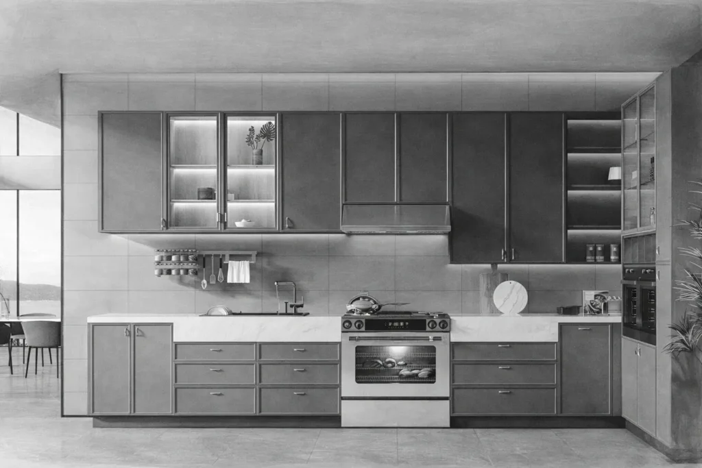 Base cabinets form the structural foundation of the kitchen system, providing reliable storage for cookware and daily essentials while supporting countertops for efficient workflow. Designed for durability, access, and modular integration.